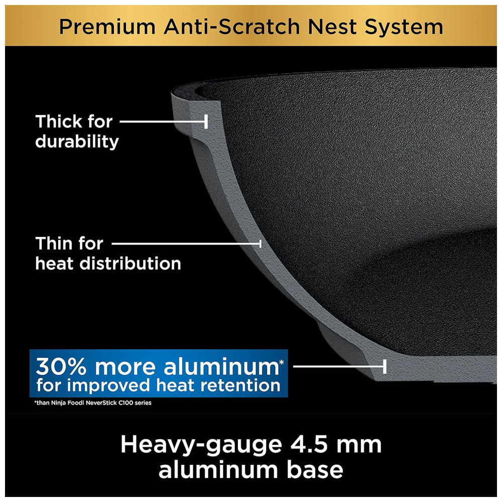 Feito com 30 mais alumínio que a série Ninja Foodi NeverStick Essential C100.