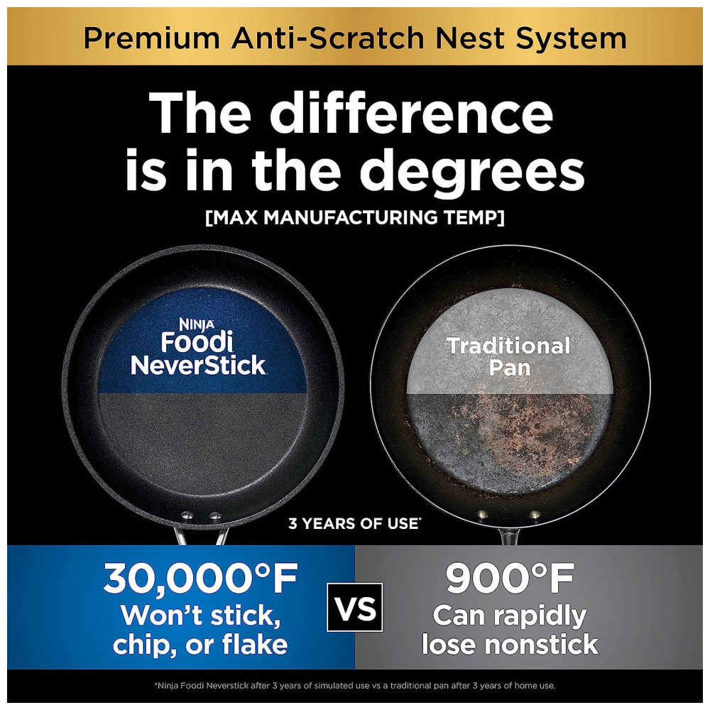 DIFERENÇA DE NUNCA PEGAR O Ninja Foodi NeverStick Cookware não gruda, lasca ou lasca.