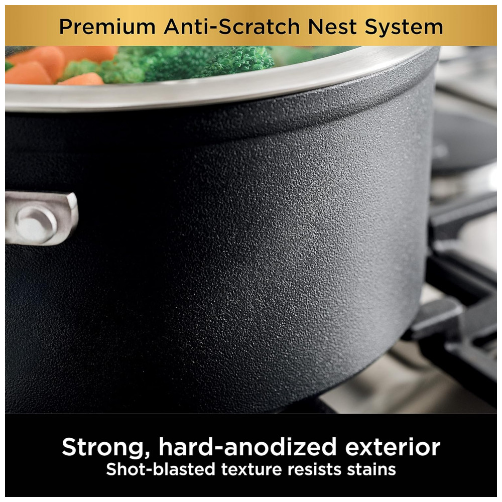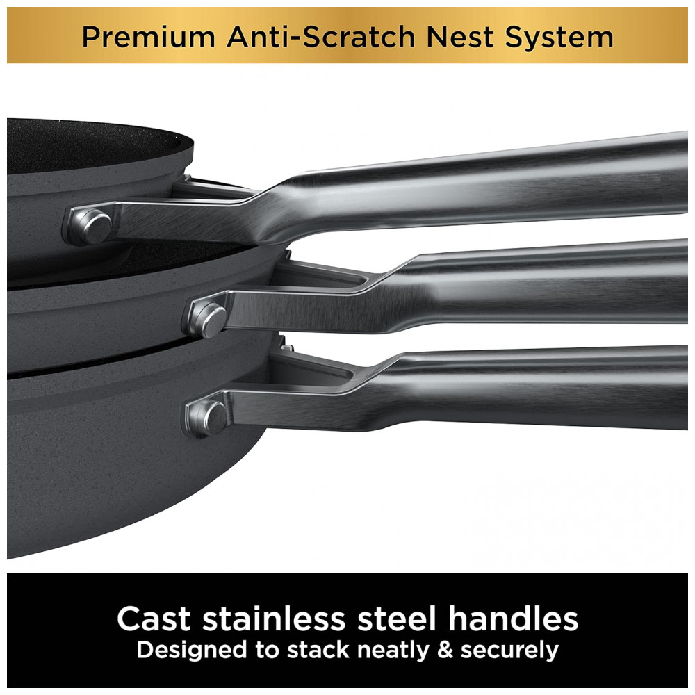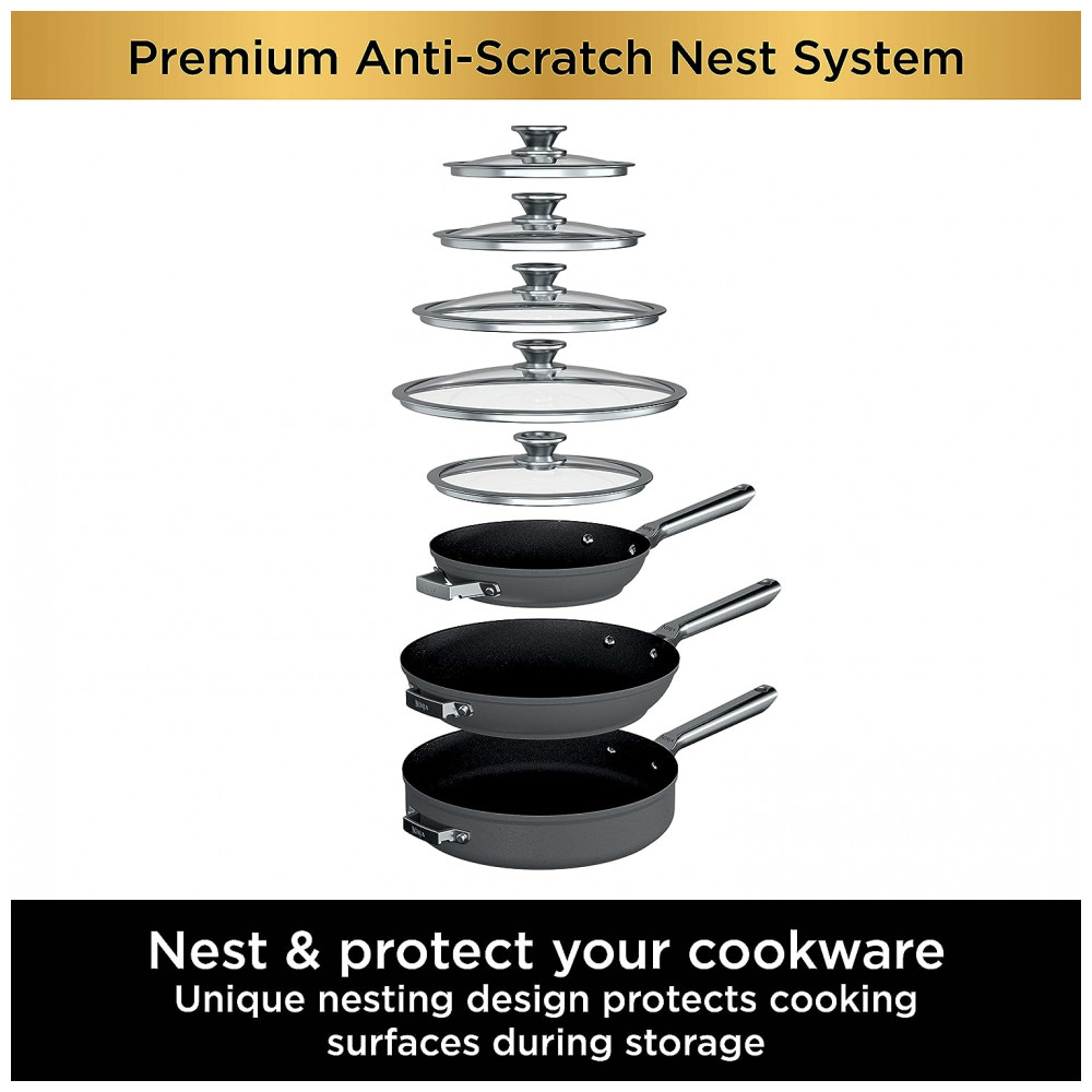 Conjunto de Panelas Antiaderente com Tampa 2 Peças 2 e 3 Litros, Ninja C54000, Cinza: PASSEIO CONVENIENTE A cozinha de nidificação ajuda a manter sua cozinha organizada e acessível.