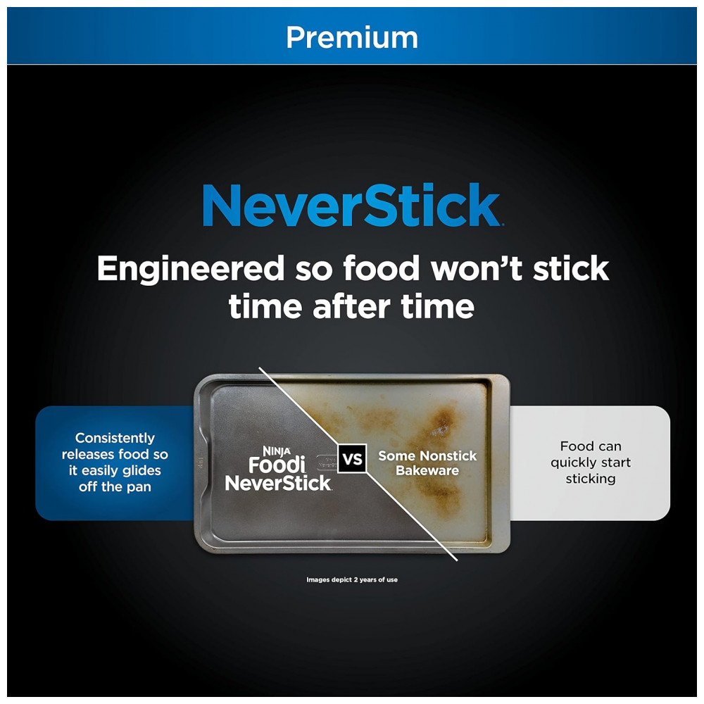 Descubra a Assadeira de Biscoitos Ninja B30116 Foodi NeverStick Premium 35,6 cm x 40,6 cm Sobre este item BAKEWARE ANTIADERENTE Projetada para liberar alimentos de forma consistente, permitindo que deslizem facilmente da assadeira.