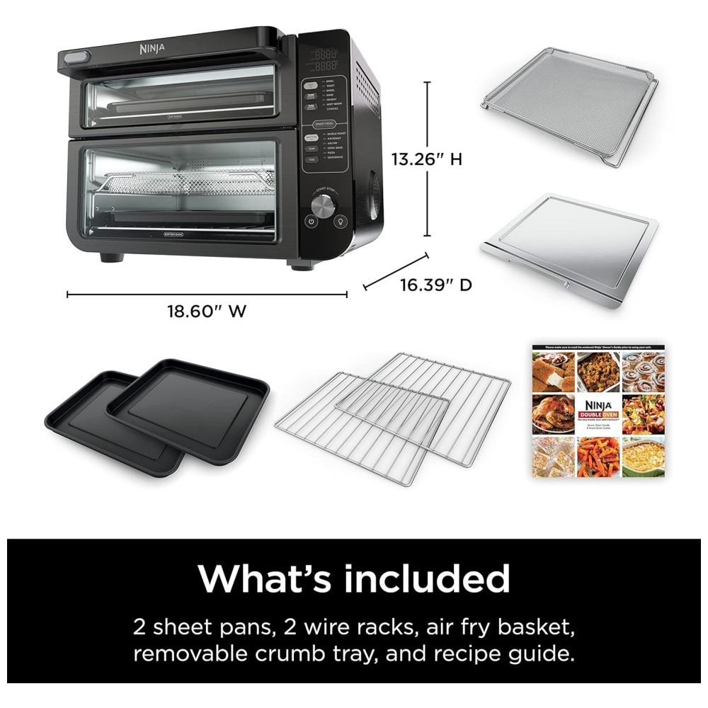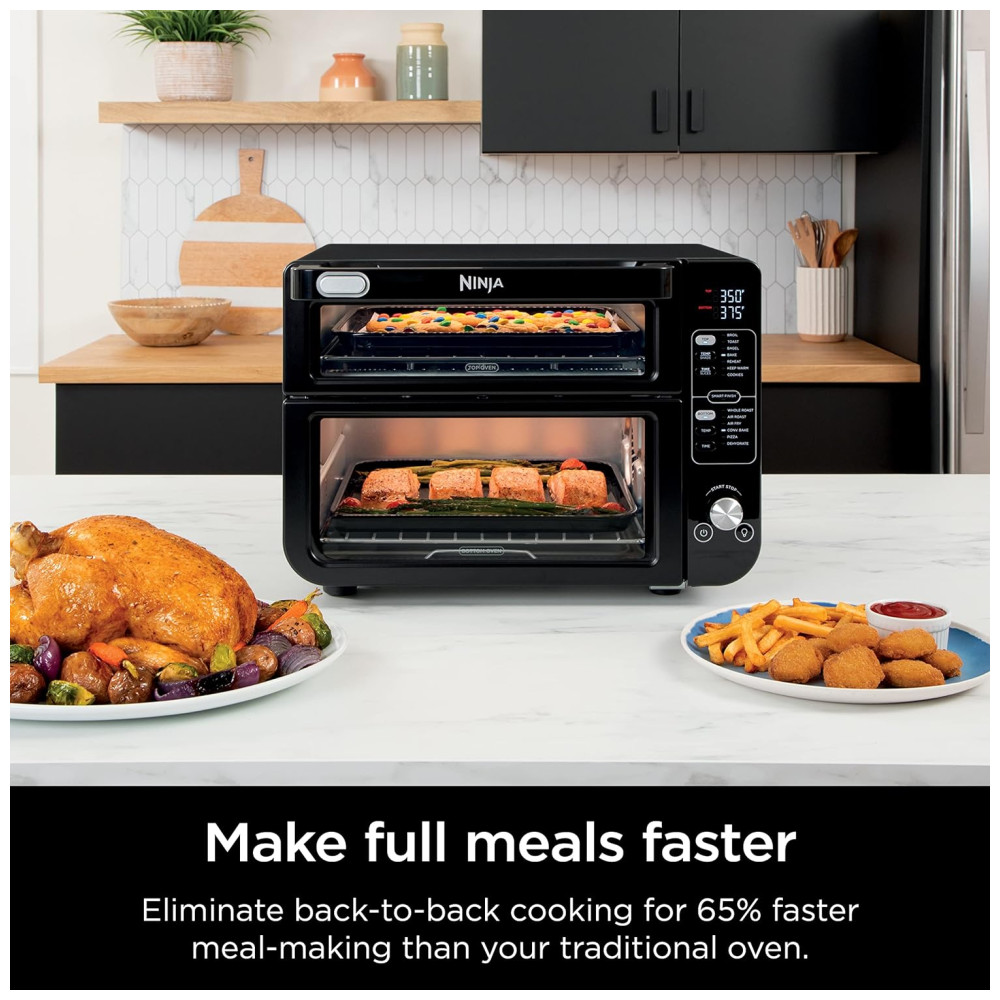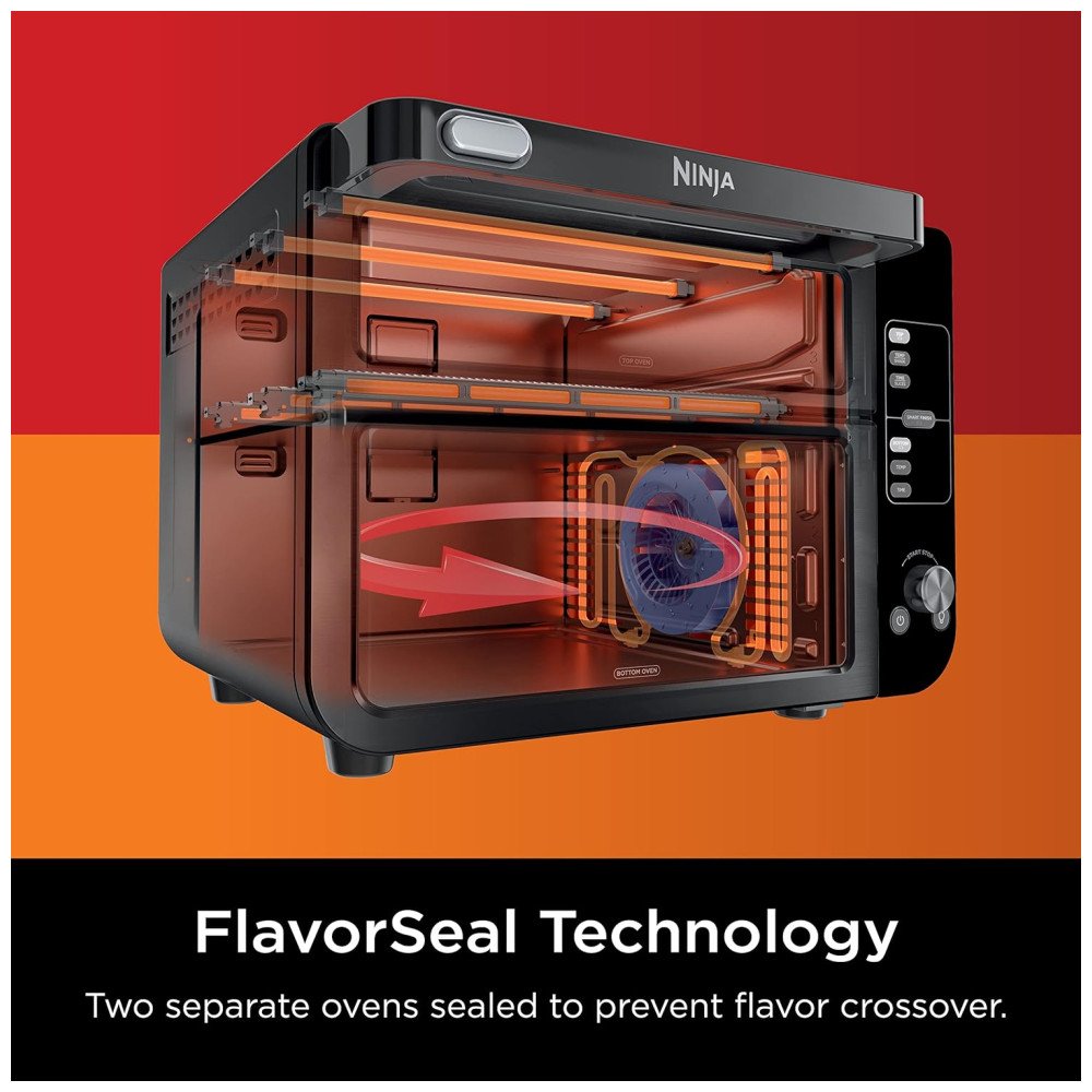Forno Elétrico Duplo 13 em 1 com Acabamento Inteligente e Tecnologia FlexDoor e FlavorSeal, 110V 1800W, Ninja DCT402BK, Preto: