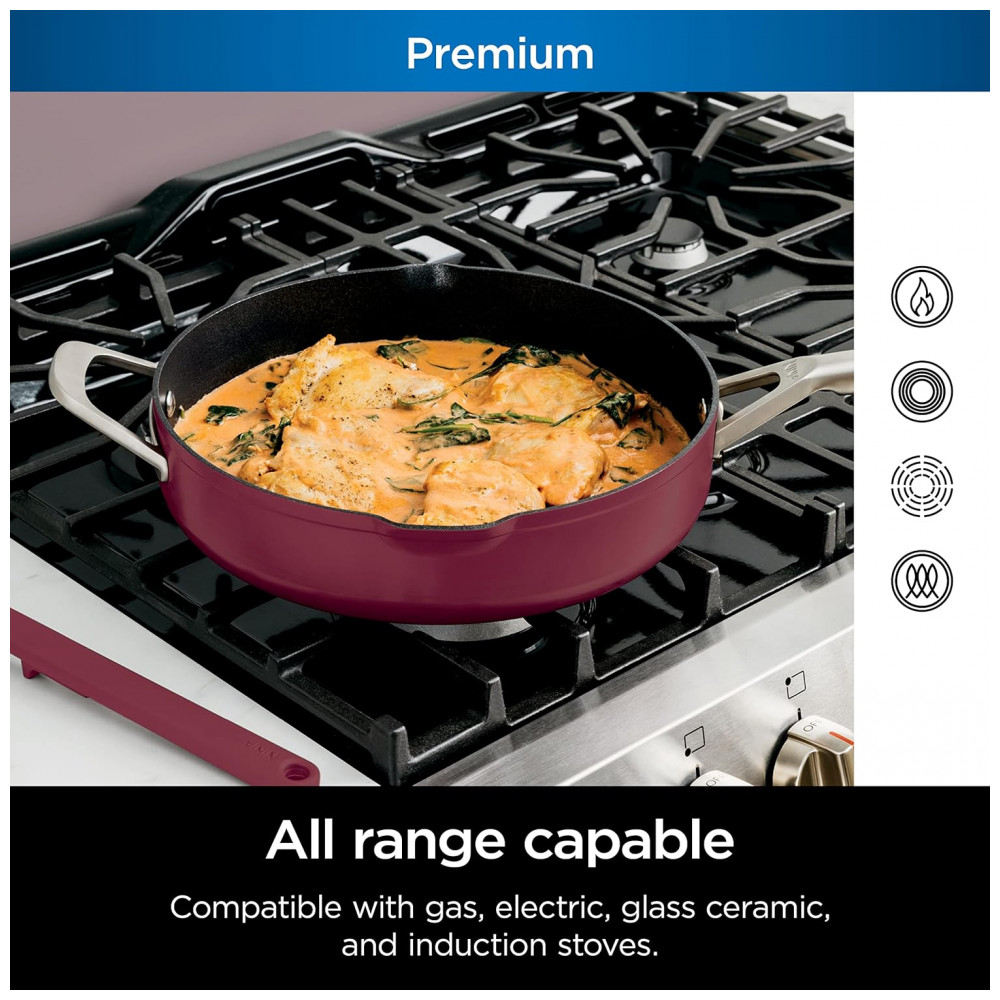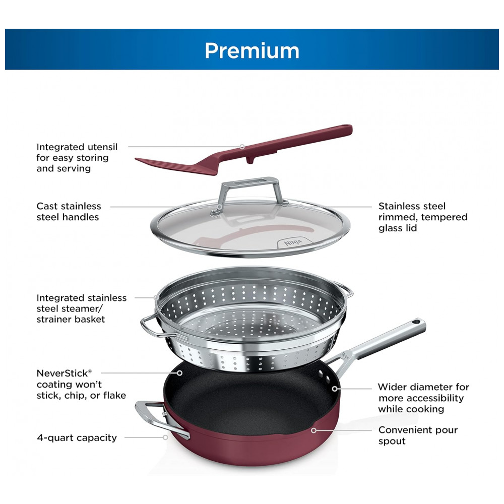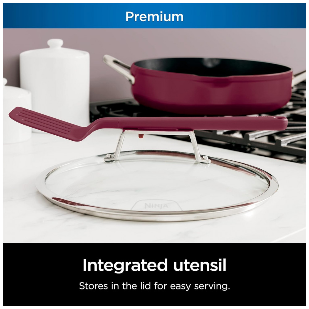 Frigideira Antiaderente 14 em 1 com Espátula e Tampa de Vidro, Ninja CW102RD, Vermelha