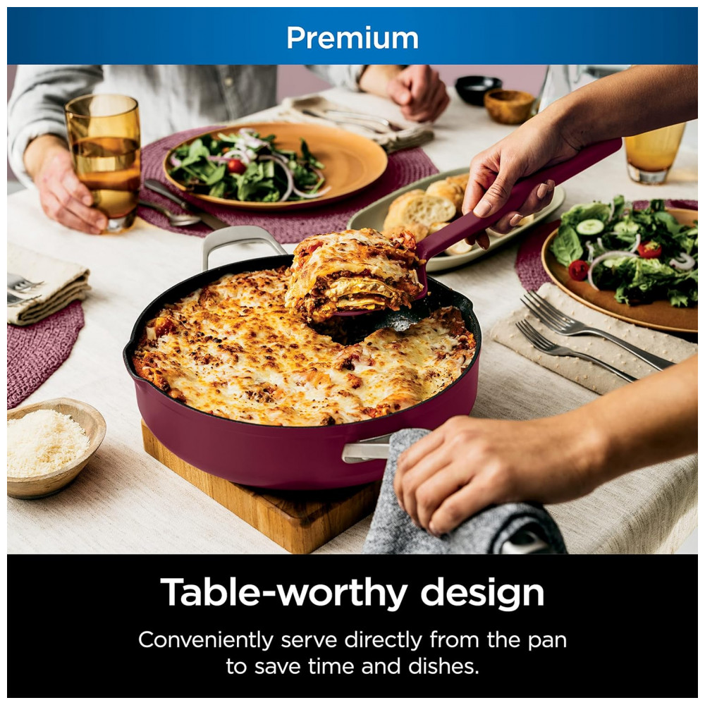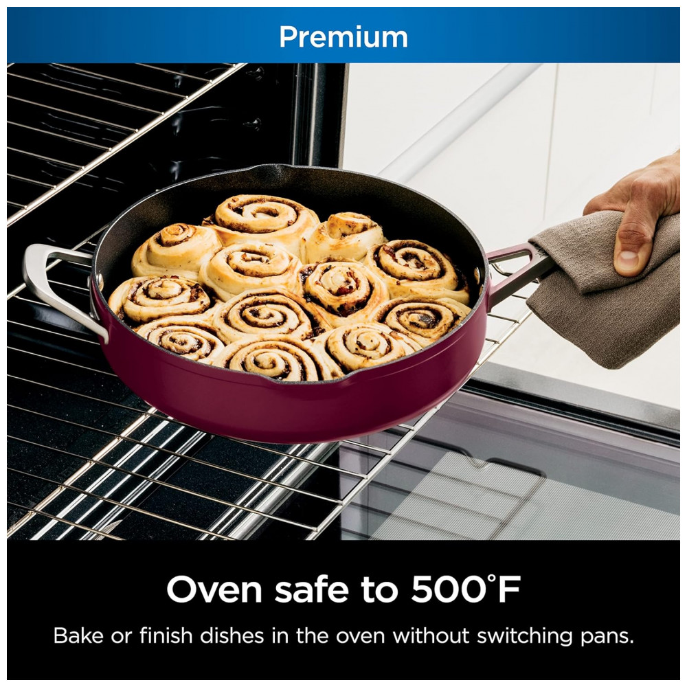 USE NO FORNO Vá facilmente da placa do fogão para o forno e faça a mesa com uma panela compatível com todas as placas de fogão, forno até 260C e projetado para dobrar como uma travessa.