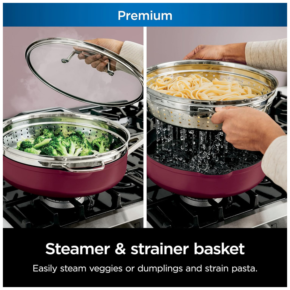 Frigideira Antiaderente 14 em 1 com Espátula e Tampa de Vidro, Ninja CW102RD, Vermelha:
