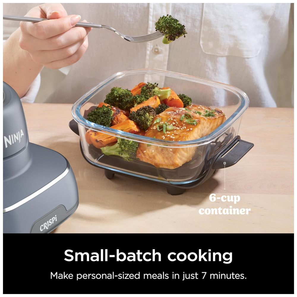 Com o Ninja Crispi, você pode preparar refeições rápidas em apenas 7 minutos, compartilhar lanches crocantes em qualquer lugar ou servir uma multidão.