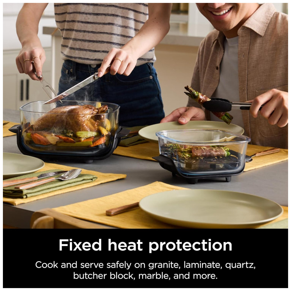 Ele apresenta proteção fixa contra o calor com pés permanentemente resistentes ao calor, permitindo que você coloque o com segurança em granito, laminado, quartzo, bloco de açougueiro, mármore e muito mais.