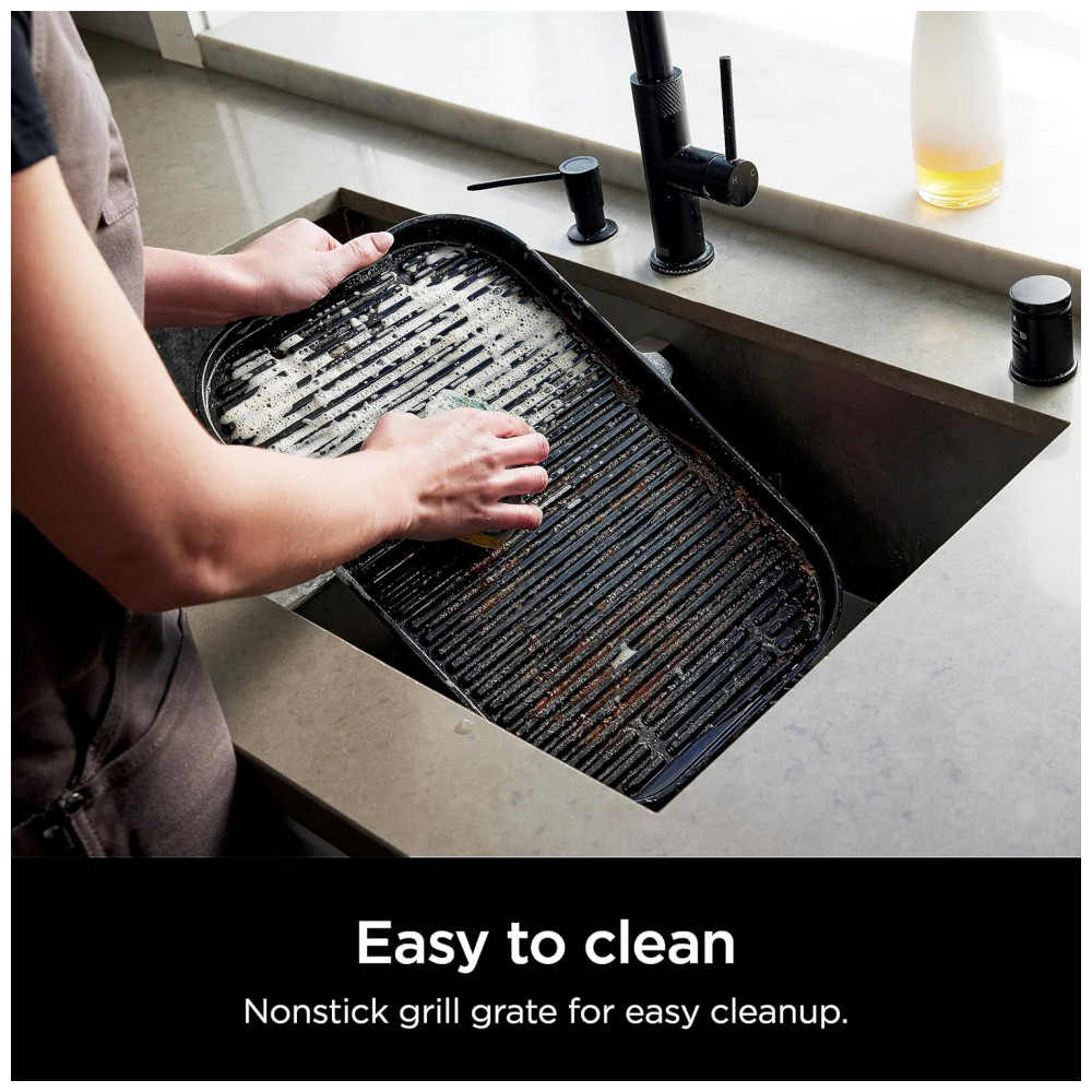 Com área de grelha em formato retangular e capacidade ampliada, a Ninja Woodfire Pro XL comporta preparos em grande volume, como costelas, hambúrgueres, frango inteiro e peças de carne para churrasco.