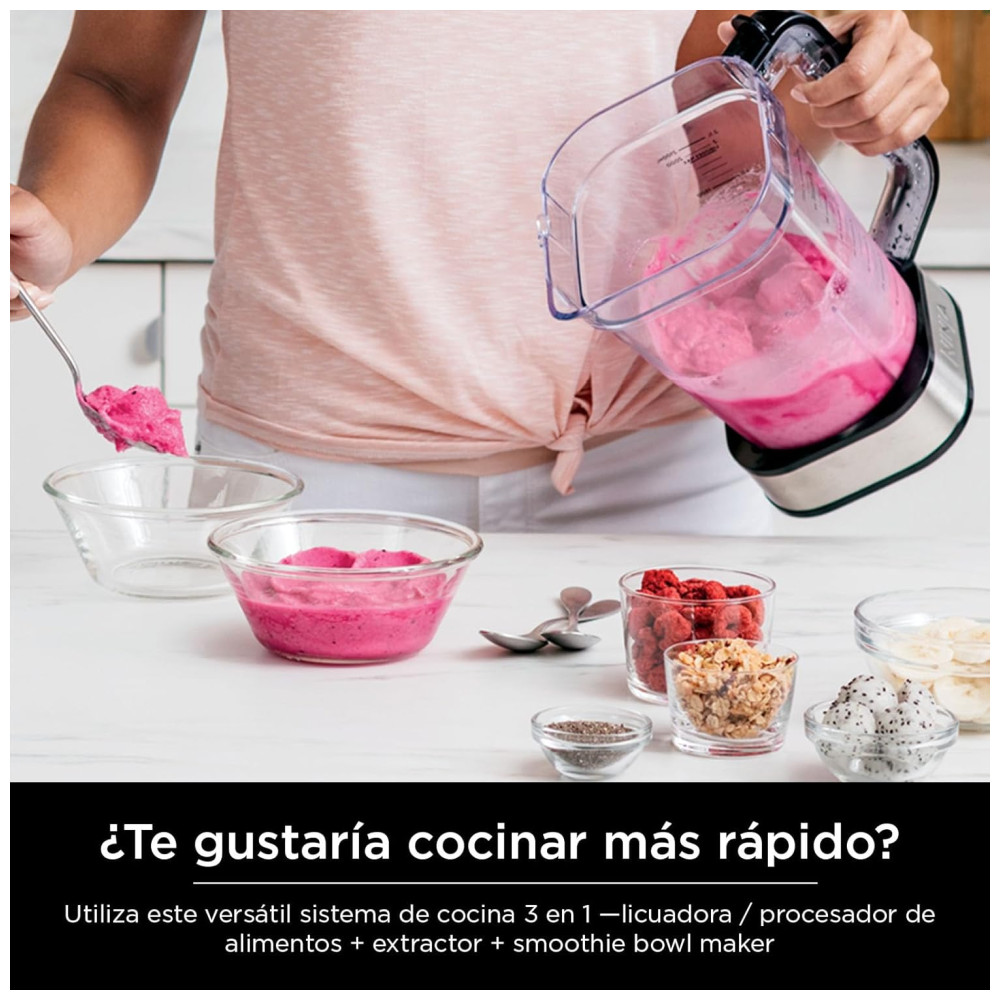 O sistema liquidificador mais poderoso do Ninja que tritura, processa alimentos e faz tigelas de smoothie e massa.