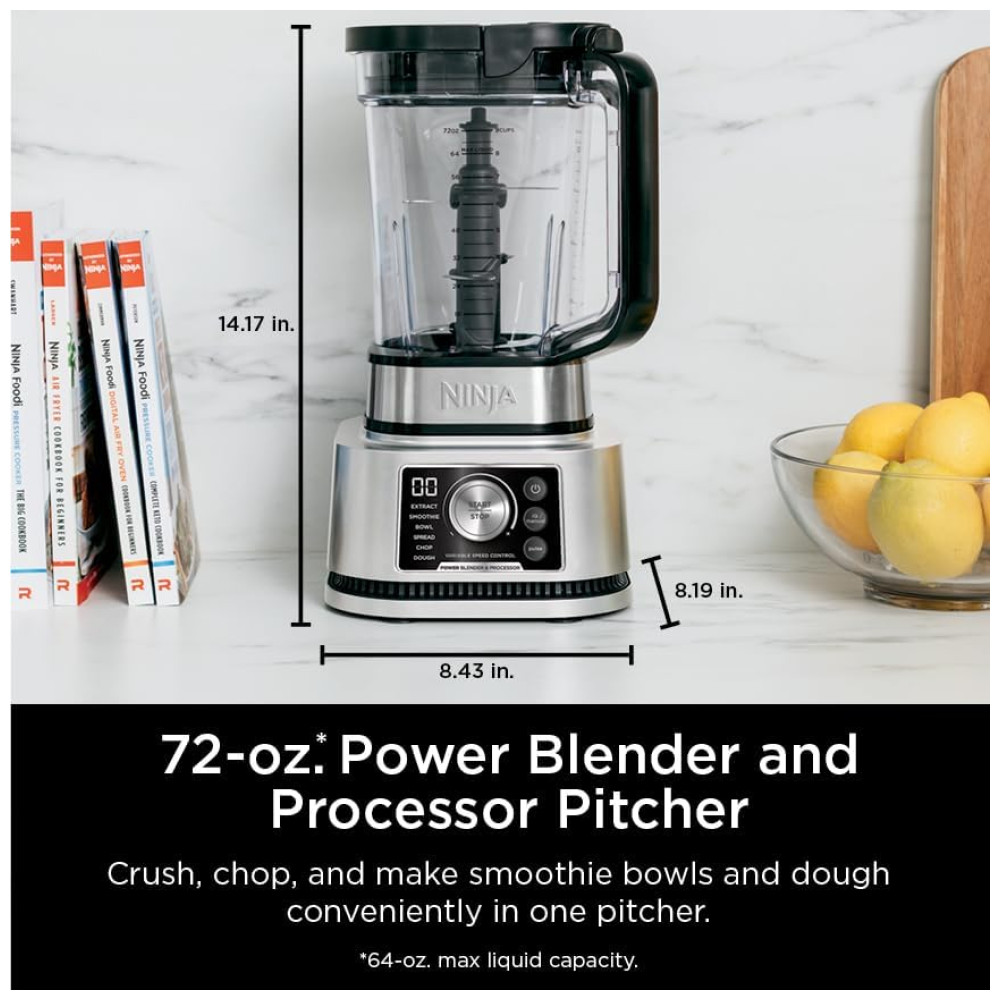 Liquidificador de Bancada 4 em 1, Capacidade 2L com Velocidade Variável, 1400W, 110v, NINJA SS351, Prateado