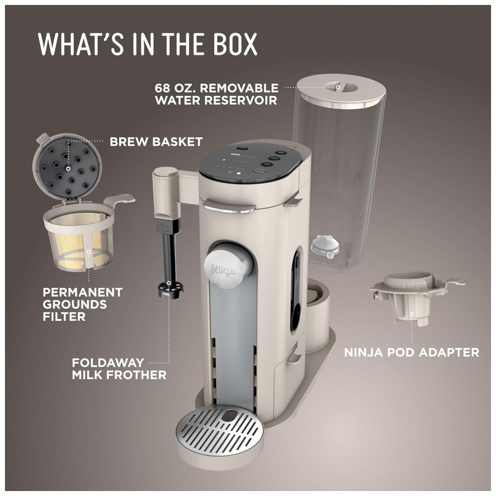 Máquina de Café Ninja Pods e Grounds Individual XL Compatível K Cup 4 Estilos Reservatório 2 L Frother Integrado Tamanhos 177 710 mL Pedra PB055AST 110V