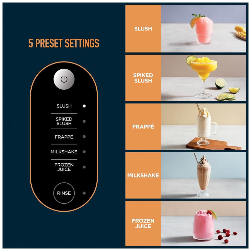 Transforma líquidos como vinho, café, refrigerante, suco e leite de chocolate em bebidas congeladas com 5 programas predefinidos automatizados para configurações de temperatura precisas.