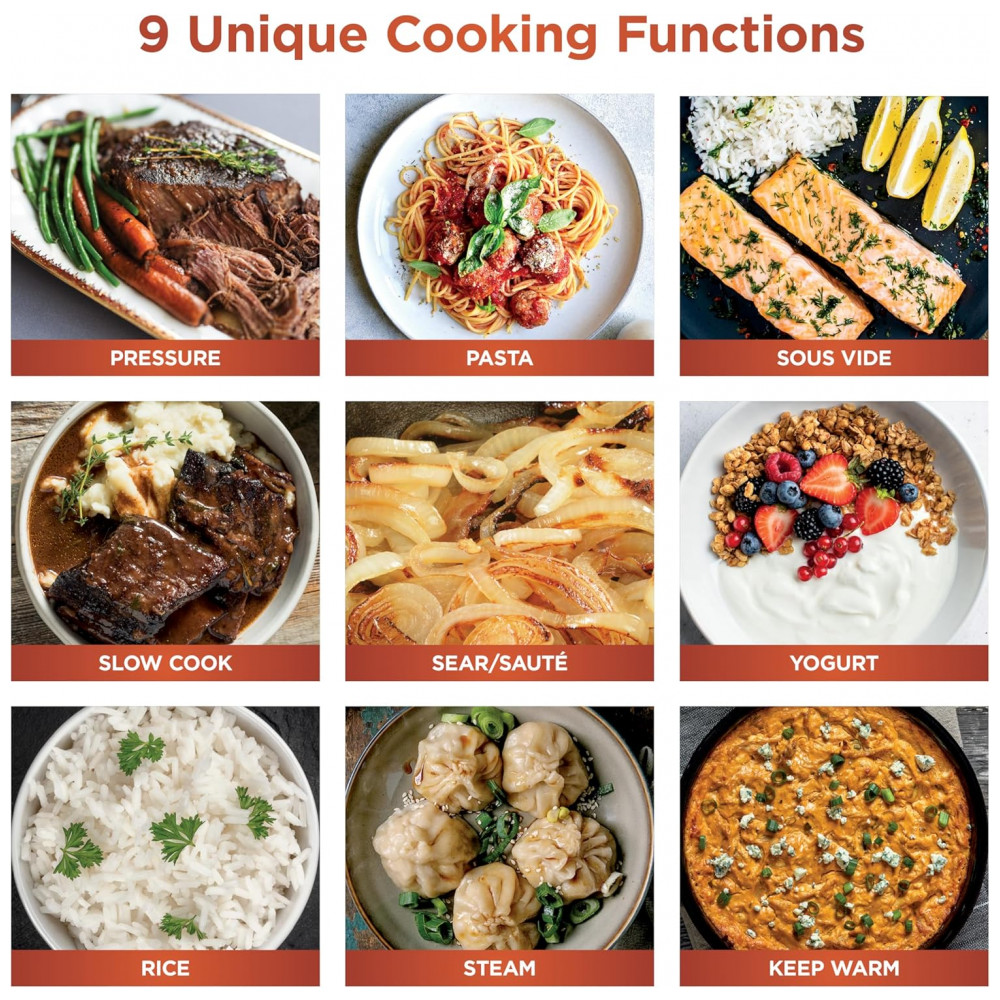 Esta panela versátil oferece 9 funções programáveis, incluindo SearSaut selar e saltear , arroz, sous vide, iogurte, vapor e muito mais.